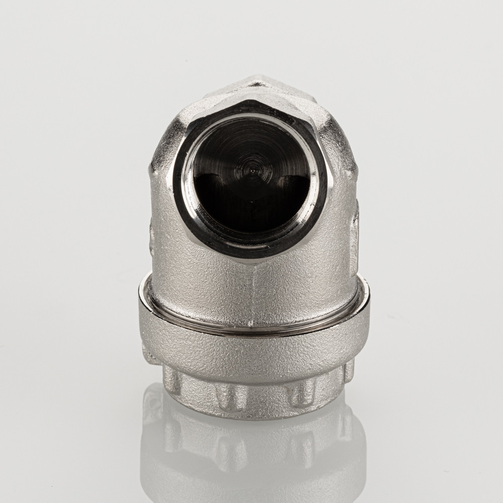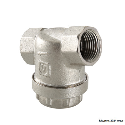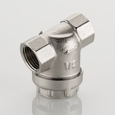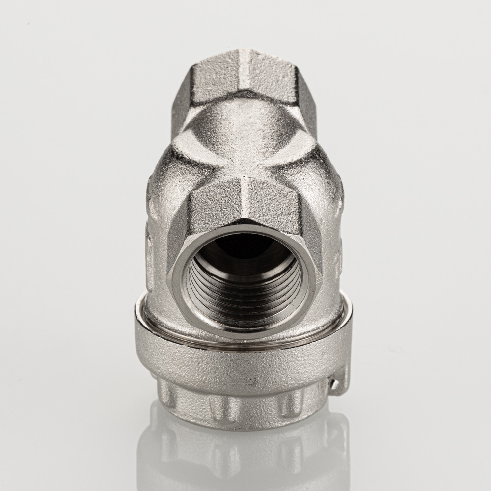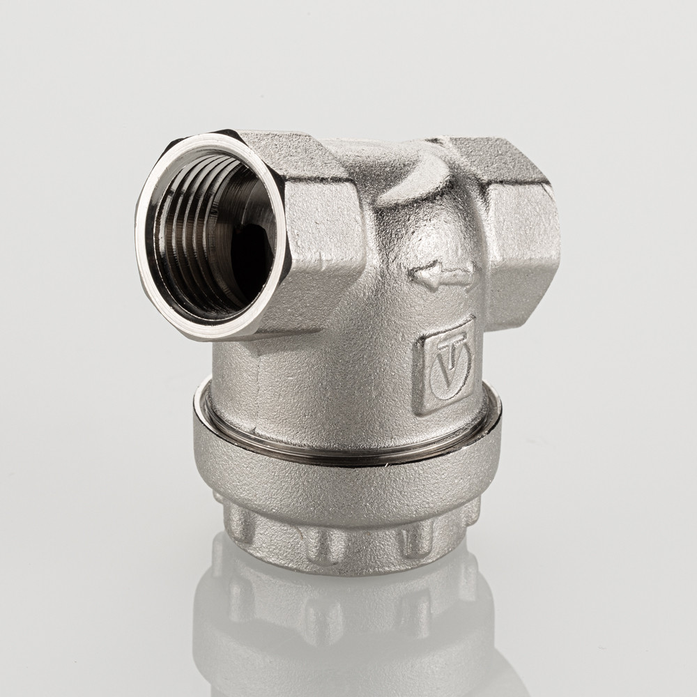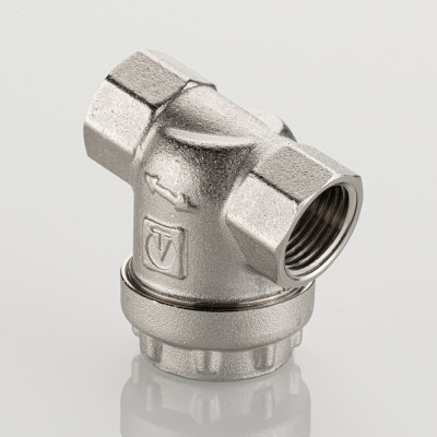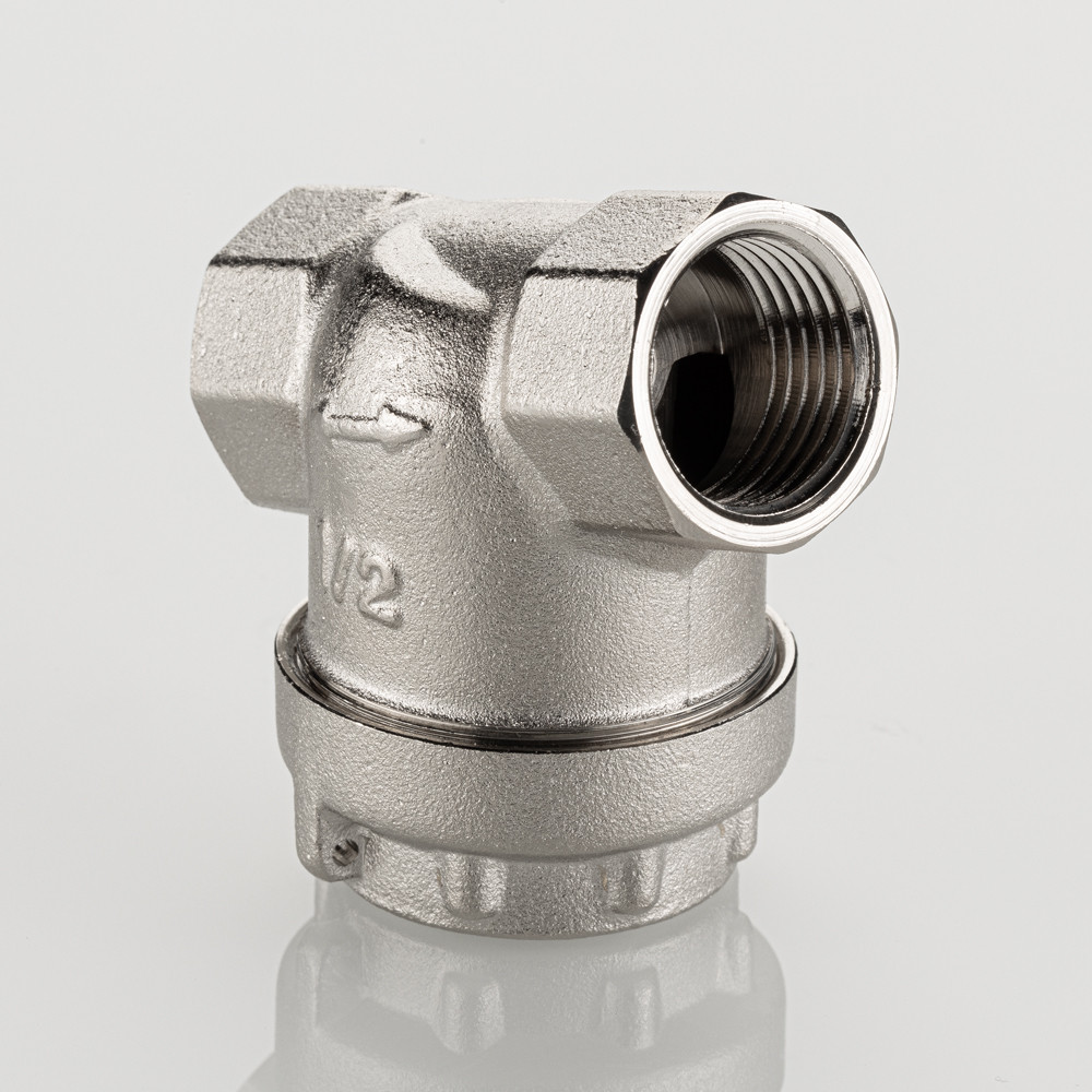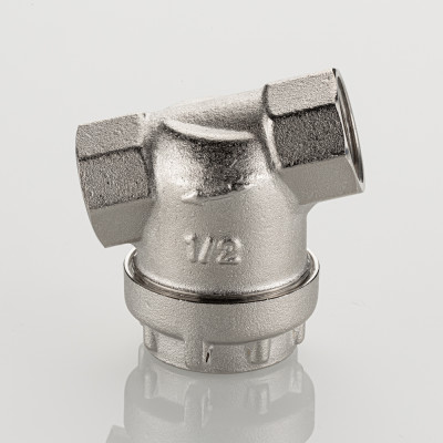 Универсальный фильтр механической очистки. Направление движения жидкости – любое. Благодаря колбе, повернутой навстречу потоку, пригоден для установки на вертикальных участках трубопровода при движении потока снизу–вверх. Корпус и пробка фильтра выполнены из латуни марки CW617N (европейский стандарт EN 12165), никелированы. Между ними имеется прокладка из EPDM. Пробка оснащена отверстием для пломбировки. Размер задерживаемых частиц – от 300 мкм. Максимальная рабочая температура фильтруемой среды – 110 °C. Максимальное рабочее давление – 16 бар. Резьба присоединения – внутренняя, 1/2".
