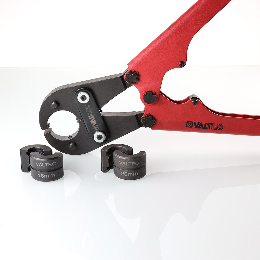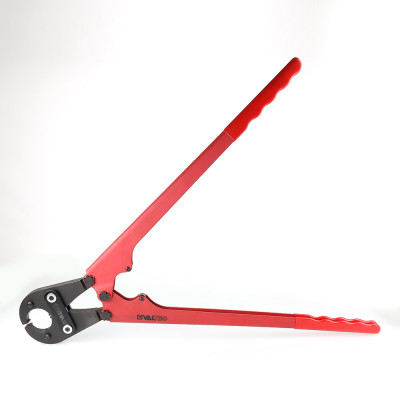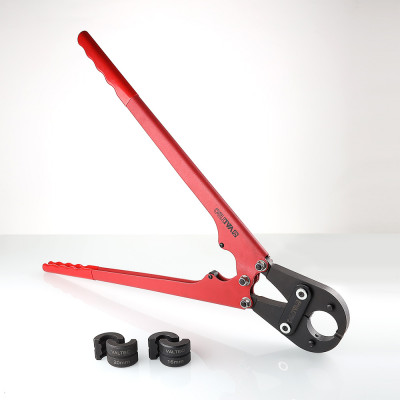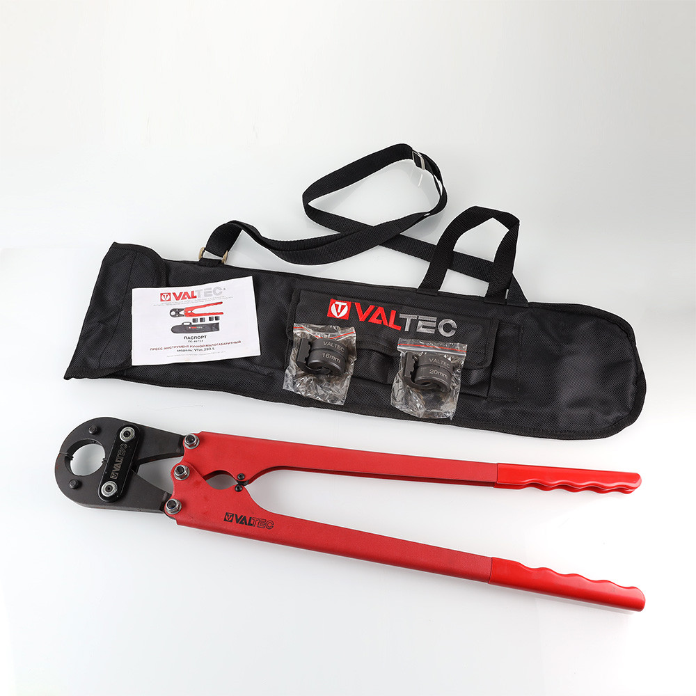 Малогабаритные пресс-клещи VALTEC обеспечивают ручное обжатие фитингов при монтаже металлополимерных, пластиковых труб диаметром 16, 20 мм. Профиль используемых насадок – ТН. Отсутствие телескопических рукояток требует больших усилий (расчетное значение – 150 Н), чем при работе со стандартным пресс-инструментом. Усилие обжатия гильзы – 10,5 кН. Средний полный ресурс – 5000, наработка на отказ – 2500 циклов. Масса пресс-клещей без насадок – 2,49 кг. Рукоятки инструмента оснащены ПВХ-покрытием. Осевые эксцентрики позволяют производить настройку клещей при появлении избыточных люфтов.