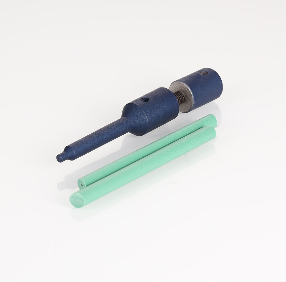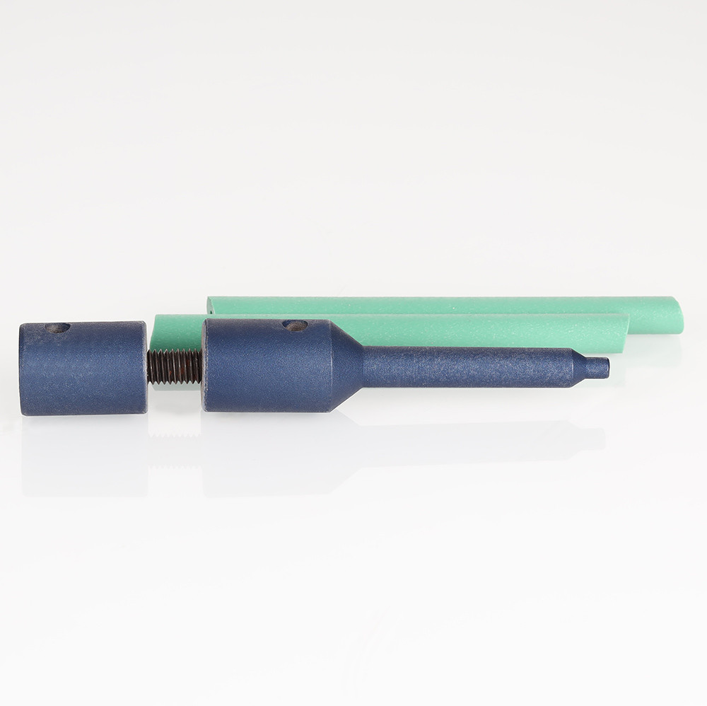Внутренний диаметр ремонтного карандаша – 9 мм, размер его кончика – 4,5 мм. При необходимости вместо ПП-заготовки (стержень диаметром 9, длиной 100 мм) можно использовать полоску распущенной вдоль полипропиленовой трубы.