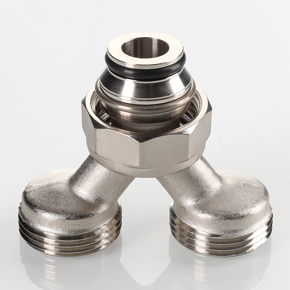 Изделие предназначено для разделения или слияния потока рабочей среды, выходящей из патрубка коллектора или входящего в патрубок коллектора систем отопления, водоснабжения, других трубопроводных систем, в которых рабочая среда неагрессивна к материалам данного фитинга.