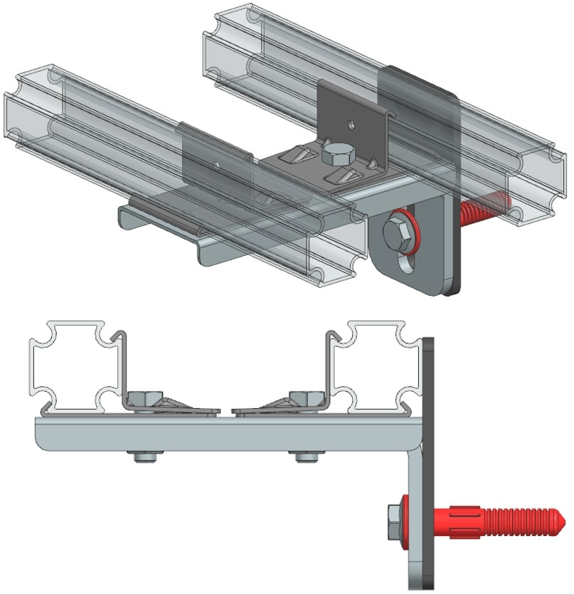 Крепление двойное WALLBOX поставляется с дюбелем с распорным элементом Termoclip-стена V2 10х60 GEO. Опционально можно докупить звукоизоляцию крепежных элементов WB90219 (в комплект поставки WB90313 не входит). Материал – оцинкованная сталь.