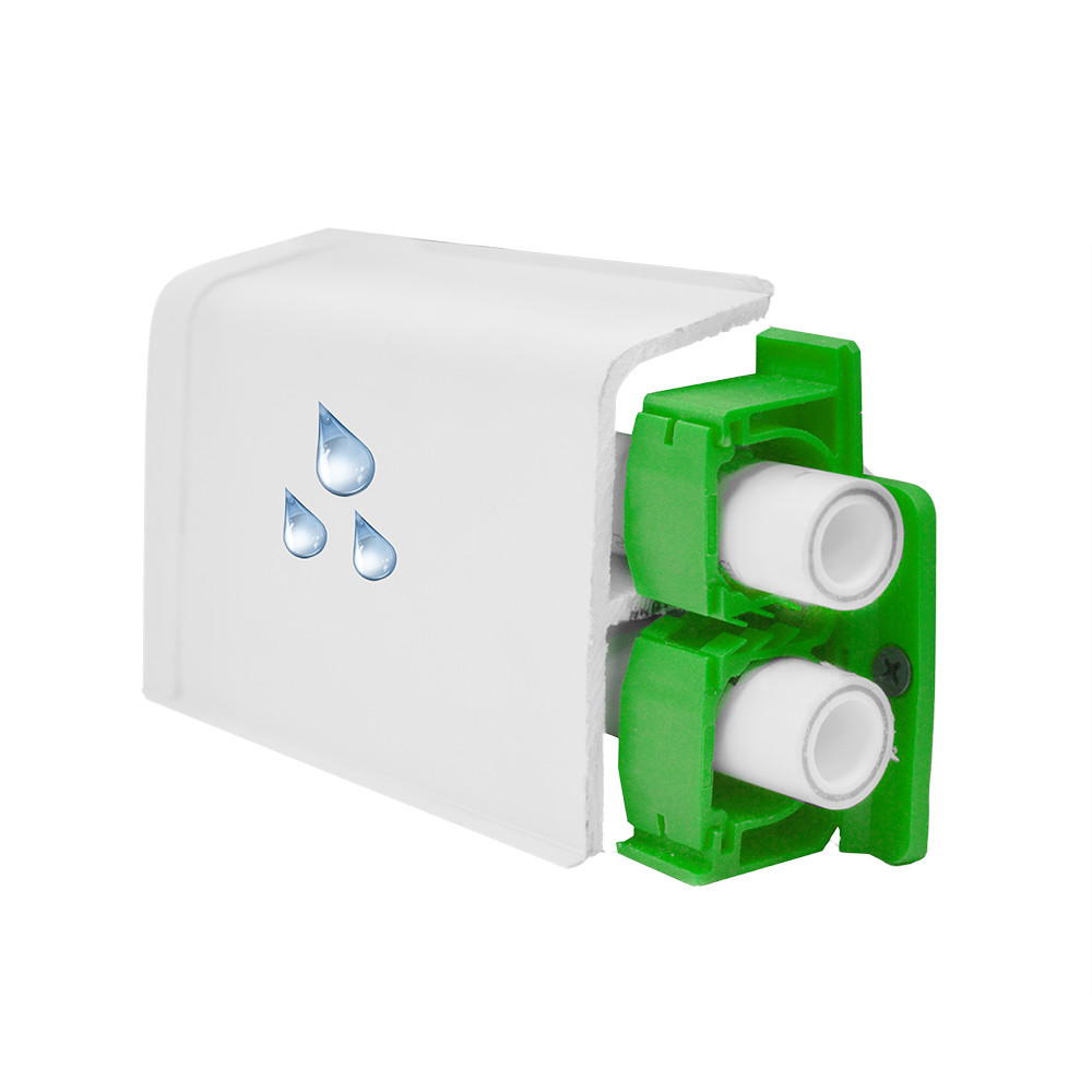 В совокупности с плинтусом AQUA 20 данный плинтус представляет систему AQUA, которая позволяет закрывать трубы отопления диаметром до 20 мм и кабеля. Такая возможность обеспечена за счет разной толщины плинтусов, 37 мм для скрытия труб отопления и 20 мм для скрытой проводки.