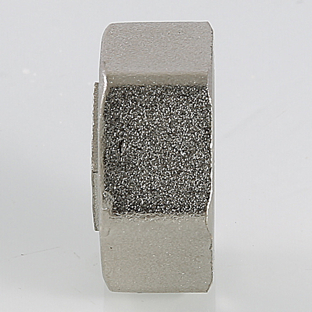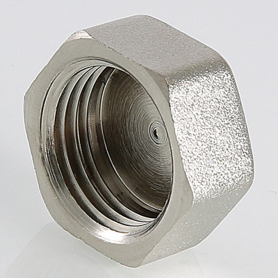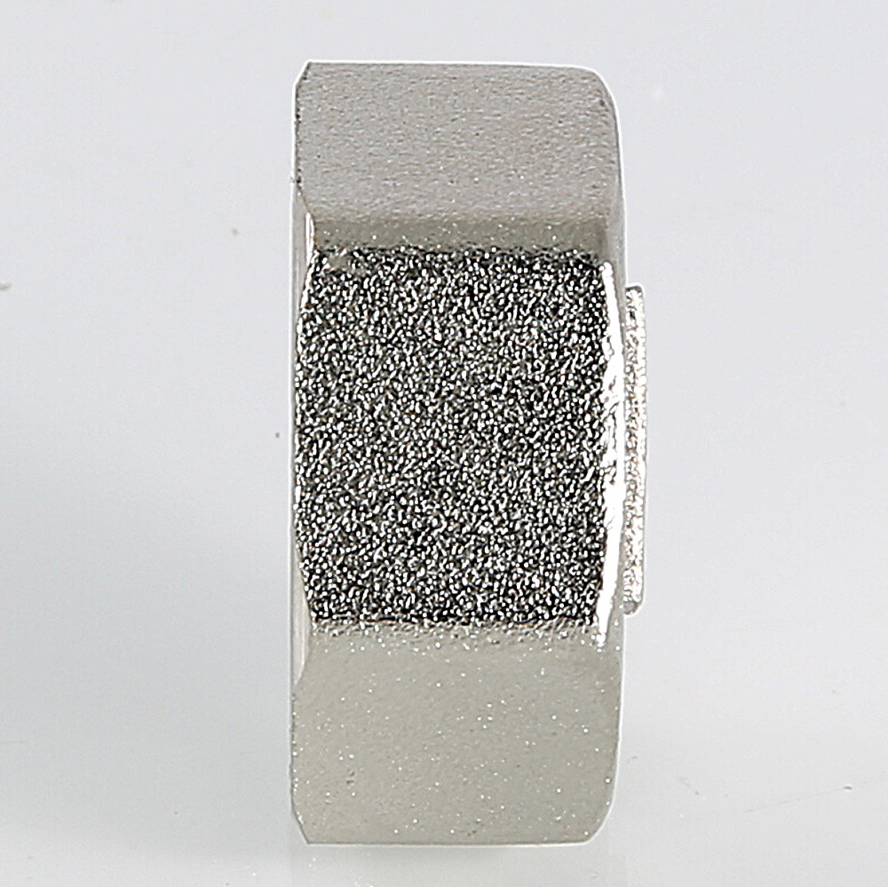 Латунная никелированная трубопроводная заглушка с шестигранной головкой. Имеет внутреннюю трубную цилиндрическую резьбу по ГОСТу 6357 (ISO 228, EN 10226), совместимую также с наружной конической трубной резьбой по ГОСТу 6211 (ISO R7).