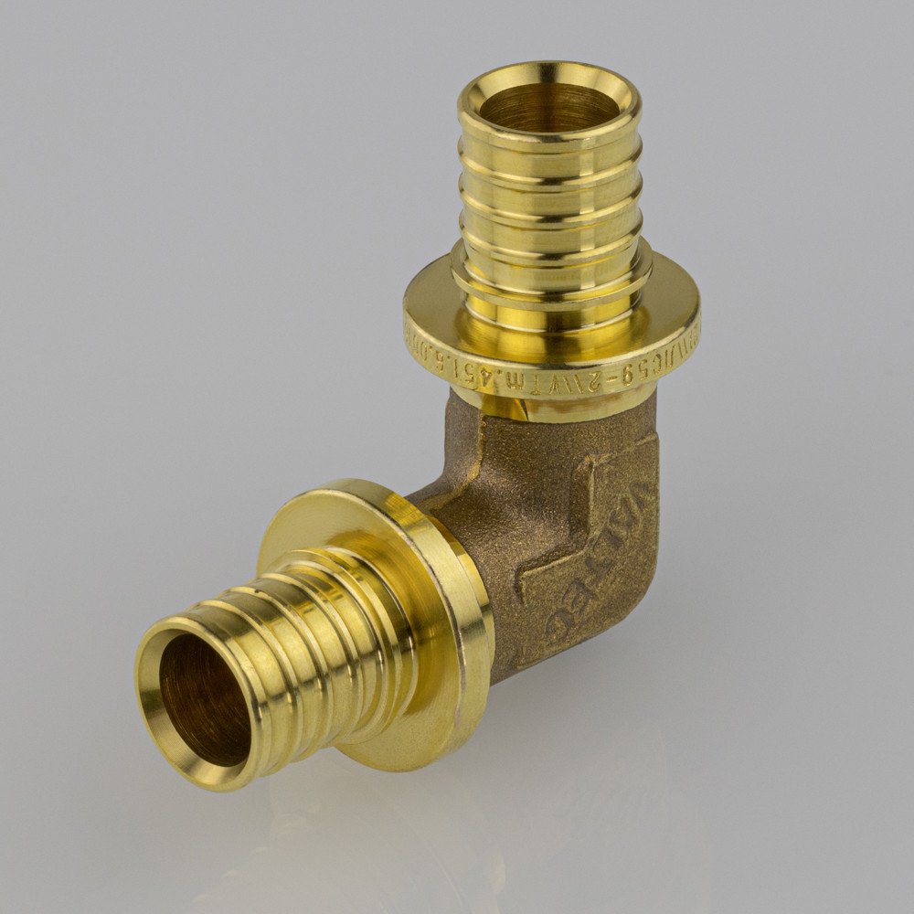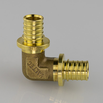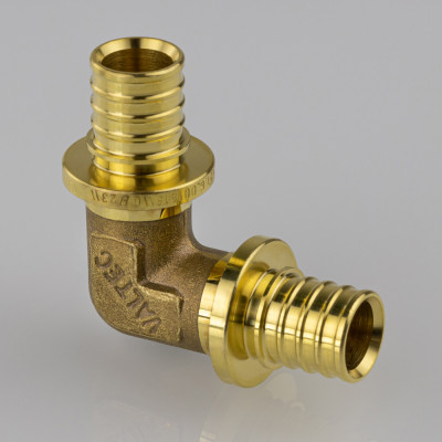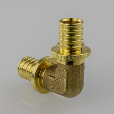 Угольник надвижной VTm.451.G – латунный аксиальный фитинг для соединения под углом 90° труб из PE-X.