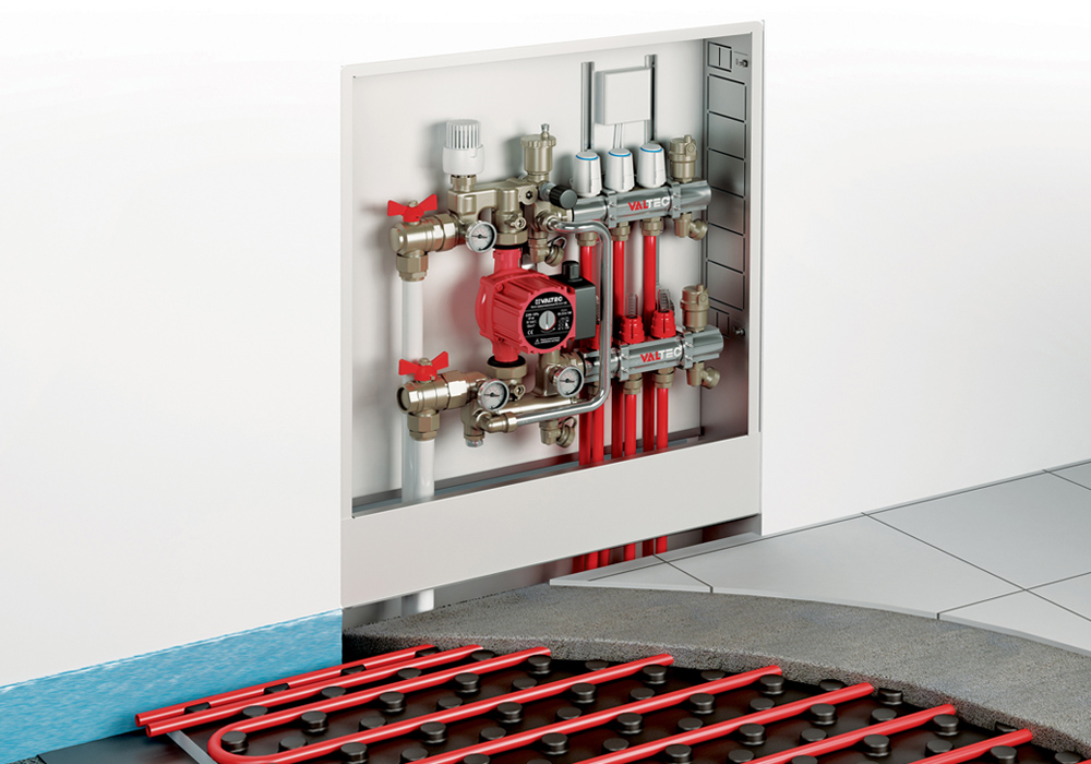 Применение в системах водяного теплого пола насосно-смесительных узлов и коллекторных блоков VALTEC – это экономия средств и времени, возможность свести к минимуму вероятность проектных и монтажных ошибок. Оборудование компактно, надежно, просто в эксплуатации, его установка не предъявляет чрезмерно высоких требований к квалификации монтажника.