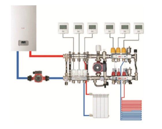 К коммуникатору подводятся провода от каждого комнатного термостата, и он передаёт принимаемые сигналы на соответствующий сервопривод или группу сервоприводов. При отсутствии запроса на отопление (все термостатические клапаны коллектора находятся в закрытом положении), коммуникатор отключает циркуляционный насос или теплогенератор (в зависимости от тепломеханической схемы системы).
