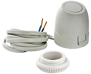 В предложенной схеме используются импульсные нормально закрытые сервоприводы VT.TE3040 или VT.TE3042 (рис. 6). Нормально закрытый привод – это привод, который находится в закрытом положении при отсутствии электропитания, а при подаче напряжения переходит в положение «Открыто». Отличие приводов заключается только в дизайне, при одинаковых эксплуатационных характеристиках.
