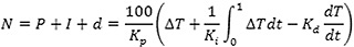 Коэффициенты Kp, Ki и Kd определяются в процессе автонастройки, предусмотренной в приборе, но также могут быть заданы или скорректированы вручную в ходе эксплуатации.