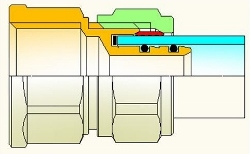 Фиксатор может быть снят с фитинга вместе с гильзой, что позволяет проверить перед монтажом наличие и правильность расположения уплотнительных колец.