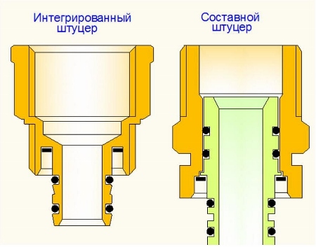 Рис. 7. Конструкции штуцеров фитинга