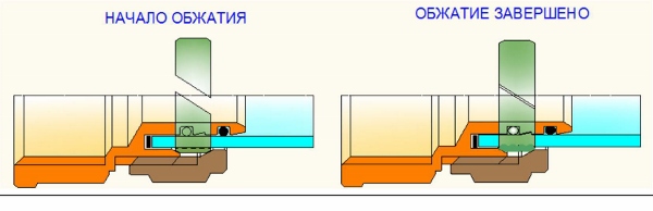 Рис. 12. Начало и завершение опрессовки фитинга