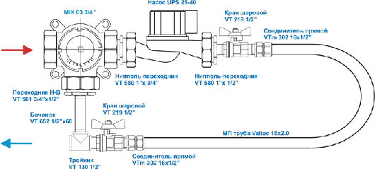 | Трехходовой смесительный клапан | VT.MIX03.G.05 ¾” | 1 | 1 400 |