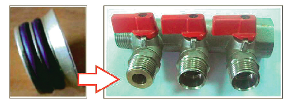 Подключение гибких подводок и фитингов с накидной гайкой и плоской уплотнительной прокладкой к патрубкам коллекторов и радиаторных клапанов, имеющим внутренний конус, опасно прорезыванием прокладки острыми краями конуса, нарушением герметичности соединения.
