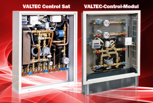 Станции VALTEC Control поставляются в двух базовых модификациях: Modul (без функции приготовления горячей воды) и Sat (с теплообменником из нержавеющей стали для автономного горячего водоснабжения). При использовании последних отпадает необходимость в прокладке по зданию центральных трубопроводов ГВС. Как правило, станции VALTEC Control комплектуются под потребности конкретного заказчика, в соответствии с определенным им набором функций.