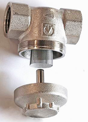 Для борьбы с этой неприятностью VALTEC первым в России выпустил латунный никелированный квартирный фильтр механической очистки со встроенным в пробку стержневым магнитом.