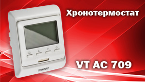 Электронный хронотермостат VT АС 709 оснащен встроенным датчиком температуры воздуха и дополнительно комплектуется термодатчиком выносного типа.