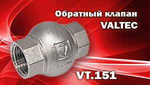 В мае 2012 г. ассортимент обратных клапанов VALTEC пополнится новой моделью – VT 151. В целом, это аналог «классического» обратного клапана VALTEC VT 161. Однако шток и золотниковая тарелка новинки выполнены из латуни, что позволяет использовать ее при более высокой рабочей температуре – до 130 °C. Сферическая форма золотниковой камеры обеспечивает большую, чем у цилиндрических клапанов, пропускную способность.