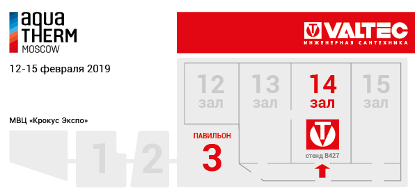 На протяжении всей своей истории наша компания является постоянным участником выставки, одним из наиболее заметных экспонентов. Будем рады видеть вас на стенде VALTEC в 2019-м! Стоять мы будем на привычном месте: возле входа в 14 зал 3 павильона (стенд В427).