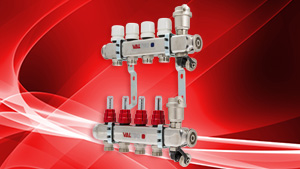 Коллекторные блоки предназначены для распределения теплоносителя по петлям теплого пола или по приборам отопления. Число выходов – от 2 до 9 (10, 11, 12 – под заказ), рабочее давление – 9 бар, максимальна рабочая температура – 90 °С. Материал корпуса – нержавеющая сталь AISI 304, фитинги, детали термоклапана, корпус воздухоотводчика выполнены горячим штампованием из латуни марки CW617N, уплотнительные кольца, золотниковые прокладки клапанов изготовлены из EPDM 70Sh.