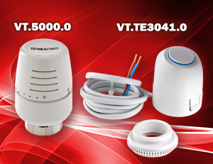 «Приводы для автоматических клапанов». Он включает в себя как приводы прямого действия – жидкостные и твердотельные термостатические головки для радиаторных клапанов, так и сервоприводы, обеспечивающие управление клапаном по сигналам комнатного термостата, хронотермостата, контроллера отопления и т.д. В частности, мы предлагаем электротермические приводы для клапанов радиаторов и распределительных коллекторов систем водяного отопления и охлаждения. В зависимости от модели, такой привод осуществляет двухпозиционное или плавное (управляющий аналоговый сигнал – напряжение 0–10 В) управление. Напряжение питания электротермических сервоприводов VALTEC – 220 или 24 В. Они поставляются в исполнении с нормально открытыми и нормально закрытыми контактами. Термостатические головки и сервоприводы VALTEC предназначены для установки на клапаны с присоединительной резьбой М 30×1,5.