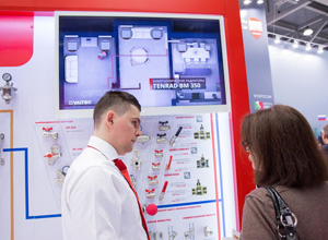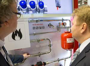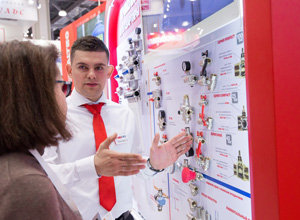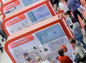 Для удобства гостей демонстрационные стенды были условно сгруппированы по информационным зонам различной профессиональной направленности – для строителей и проектировщиков, для монтажников и продавцов инженерной сантехники, для тех, кто занимается малоэтажным строительством. В зоне, адресованной всем посетителям, компания демонстрировала свои новинки. В отличие от прошлых лет в экспозиции отсутствовали стенды, представляющие товарные группы. Инженерная продукция демонстрировалась именно в составе узлов, обвязки и т.д.