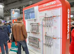 Стенд «VALTEC для квартиры» демонстрировал широкий ассортимент водопроводной арматуры – кранов, фильтров, редукторов давления, коллекторов, элементы обвязки отопительных приборов и др. Макет разработан с ориентацией на запросы розничных продавцов, застройщиков, специалистов, занимающихся узлами водоснабжения в квартирах, частных сантехников. Выставка показала интерес к данной продукции всех монтажников. Особенной популярностью среди представленных изделий пользовалась комбинированная арматура, такая как редуктор давления с фильтром и манометром, кран с прямым фильтром, КФРД и пр.