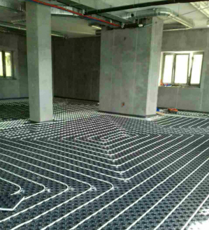Трехэтажное офисное здание в Мытищинском районе Московской области интересно тем, что полностью отапливается водяным теплым полом, а источником тепла служит тепловой насос. Проектирование отопления осуществлялось специалистами нашей компании. Каждый этаж здания разбит на две самостоятельные температурные зоны со своим коллекторным блоком из нержавеющей стали VTc.586.EMNX. Напольное отопление выполнено на основе металлополимерной трубы VALTEC V1620.